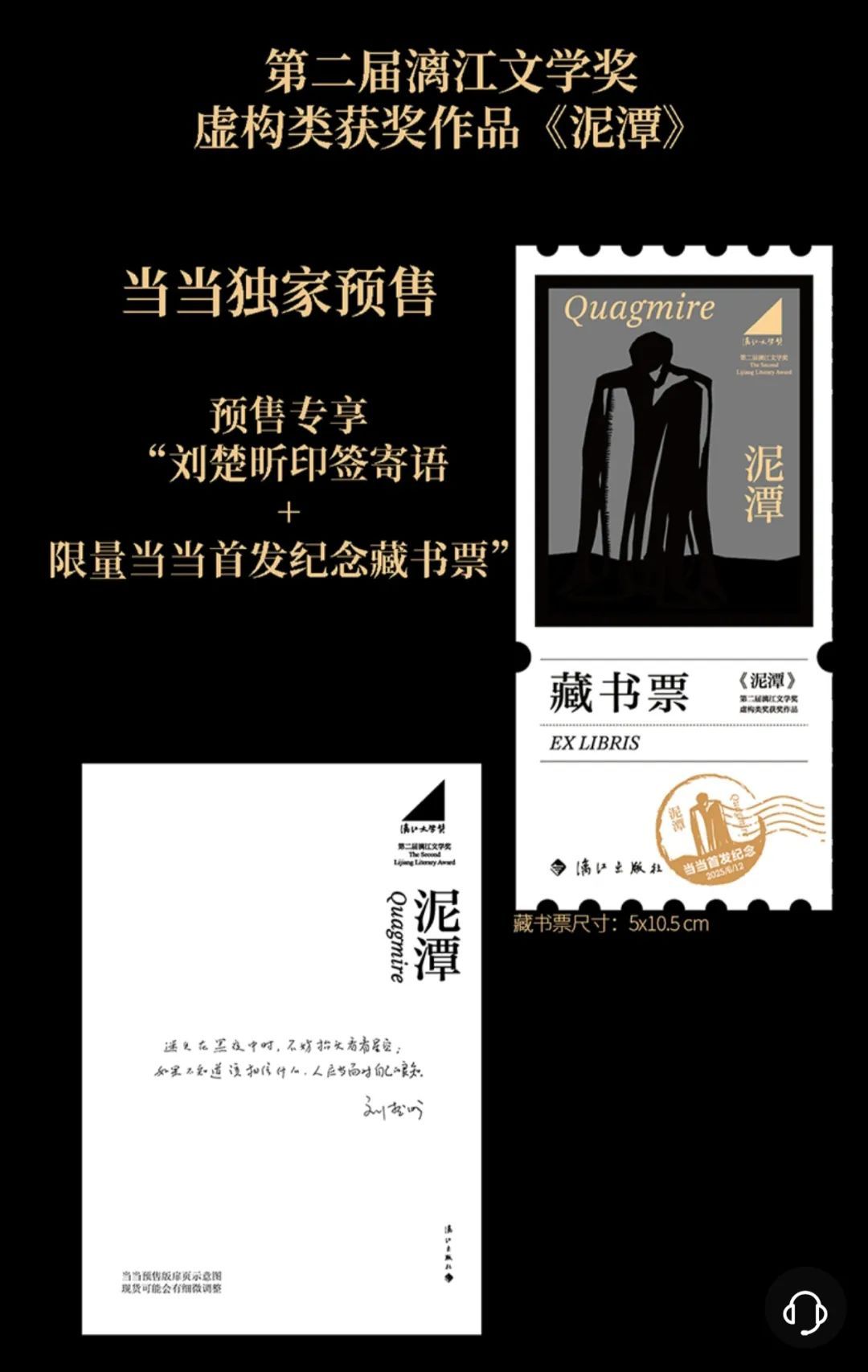 预售页面也展示了《泥潭》的暂定书封。腰封上还有余华的一句推荐语:“刘楚昕的《泥潭》,在亡灵开口那天,历史开始了讲述。”